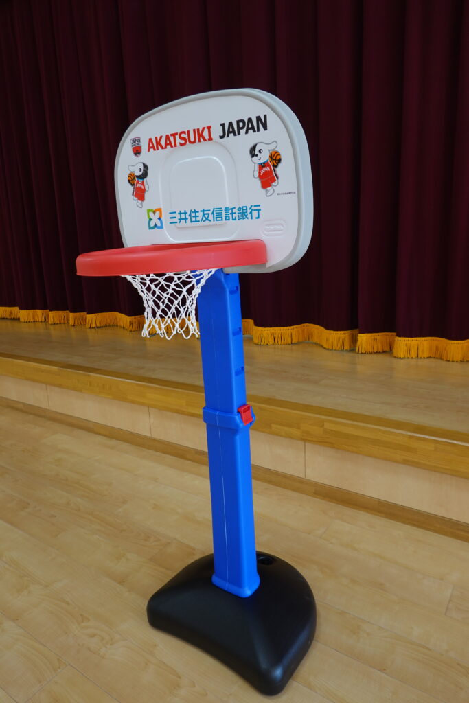 先日、三井住友信託銀行様より「シュートで描く未来のアーチ!プロジェクト」の一環として、バスケットのミニゴール1基とボール5個をいただきました。