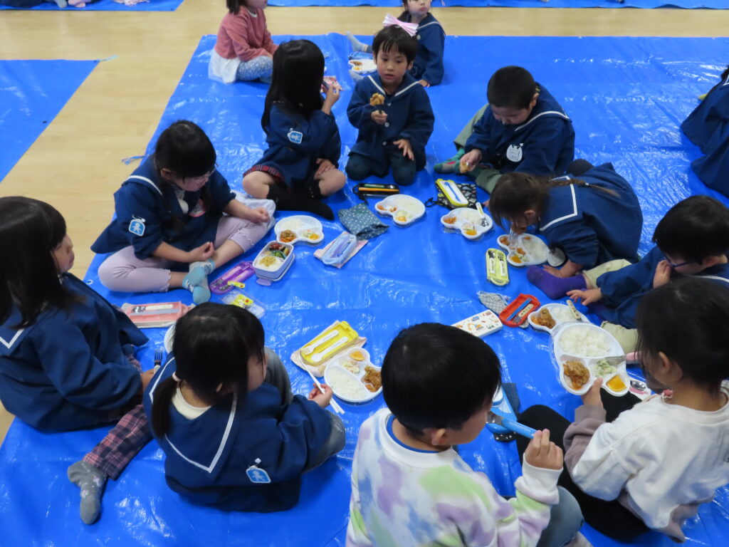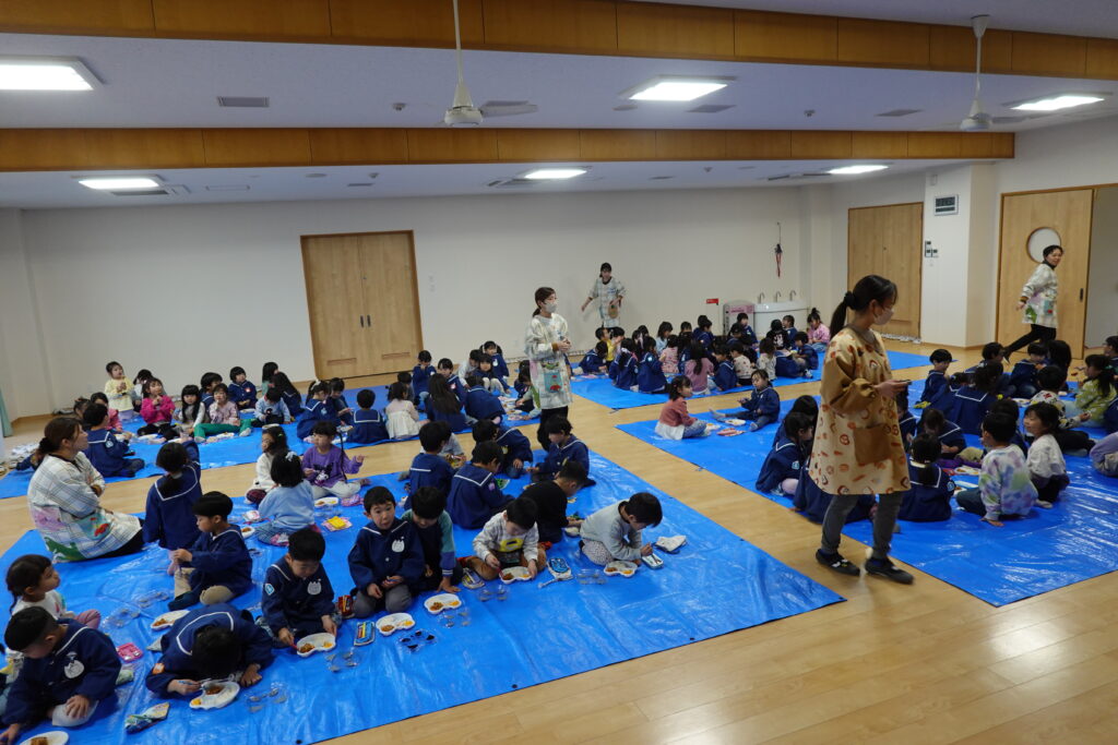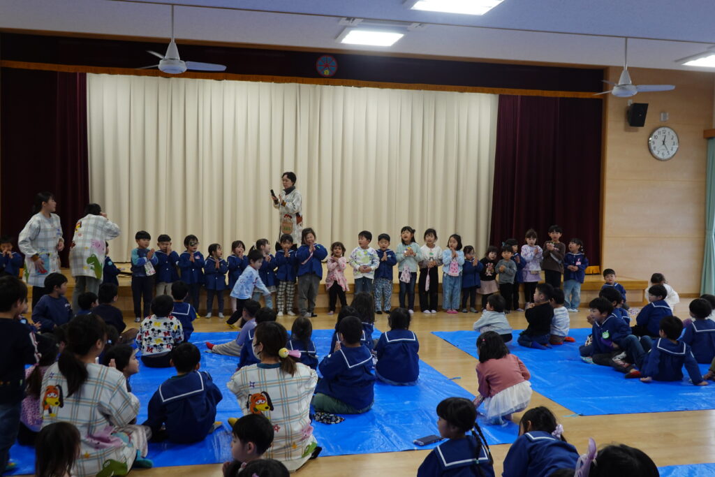 年長組さんのクラスに年中組さんと年少組さんがお邪魔して