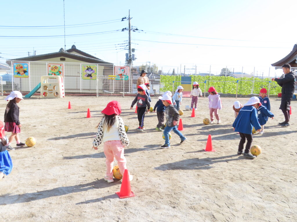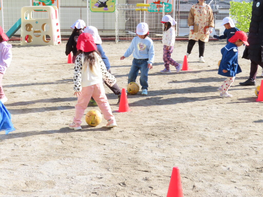 本日年長組さん、年中組さんがサッカー教室に参加しました😊 ボールを蹴るのは難しいようで、苦戦していた子どもたちでしたが お友だちに応援してもらったり 一生懸命に取り組んだりしながら楽しんでいました🎵⚽ FacebookXBlueskyHatenaCopy By staff2025年12月25日お知らせ, 園の様子