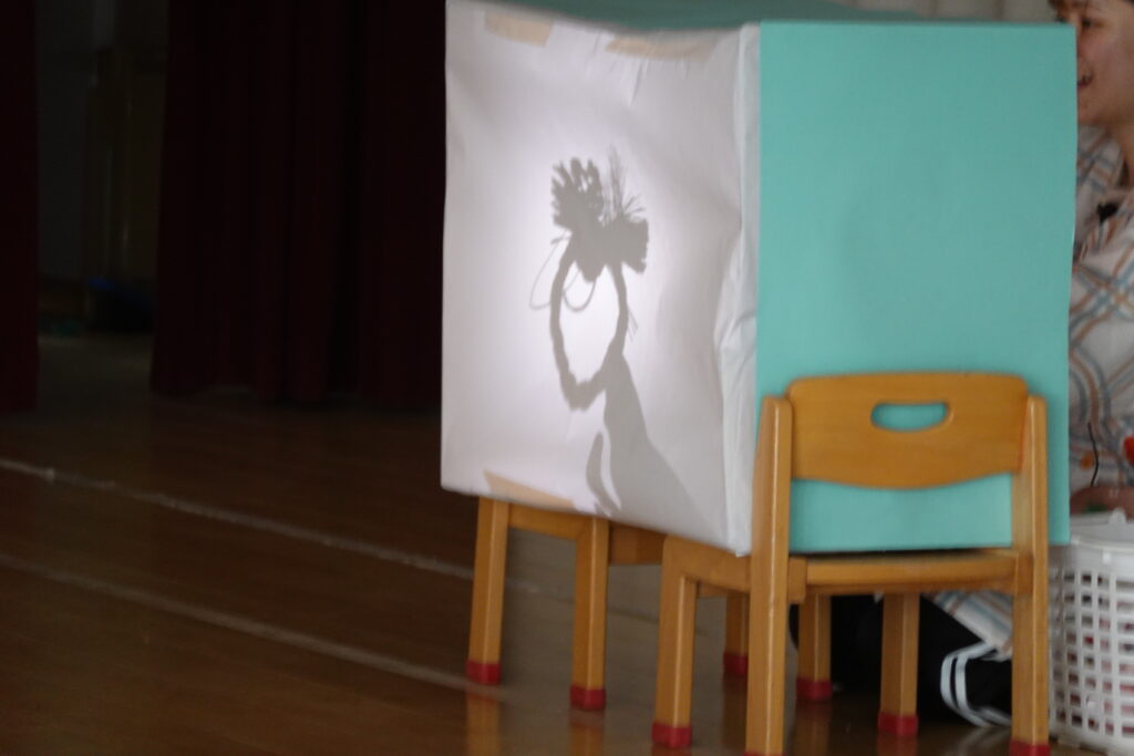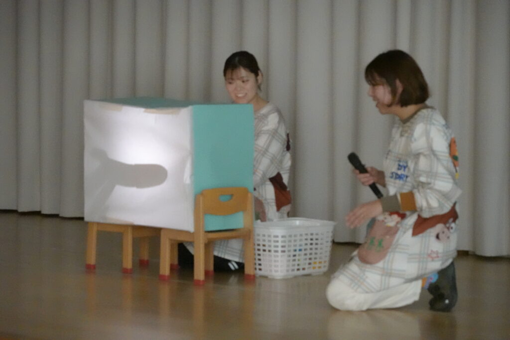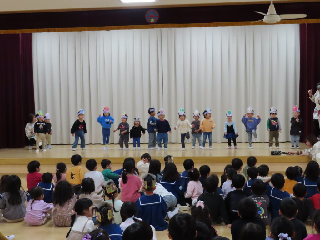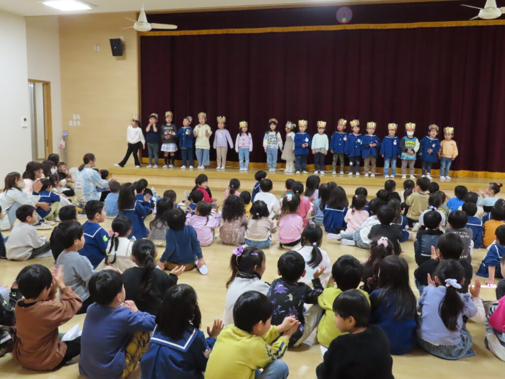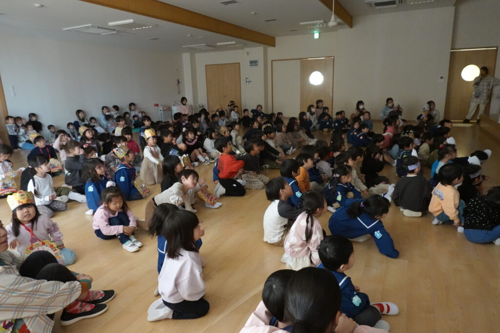 先生からプレゼントを受け取りニコニコ笑顔の子どもたち