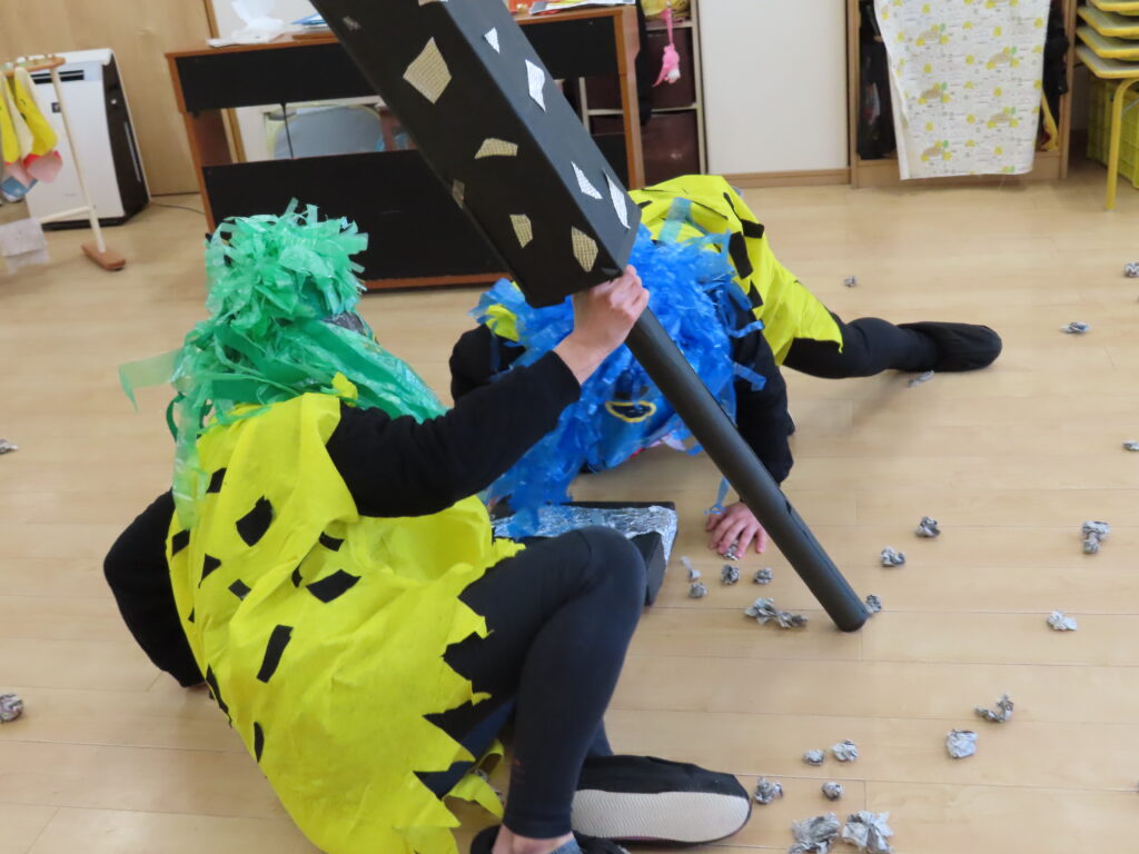 鬼を倒すために子どもたちは準備万端✨で挑みました👊