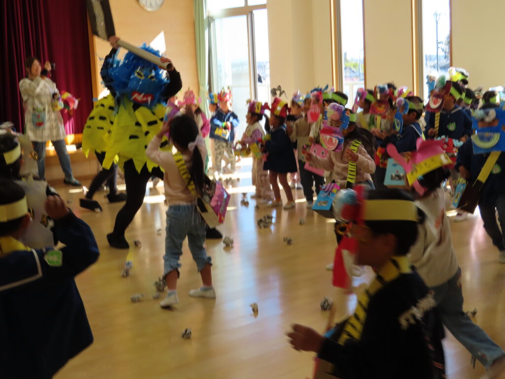 鬼を追い払えた子どもたちはとても誇らしげでした🎵